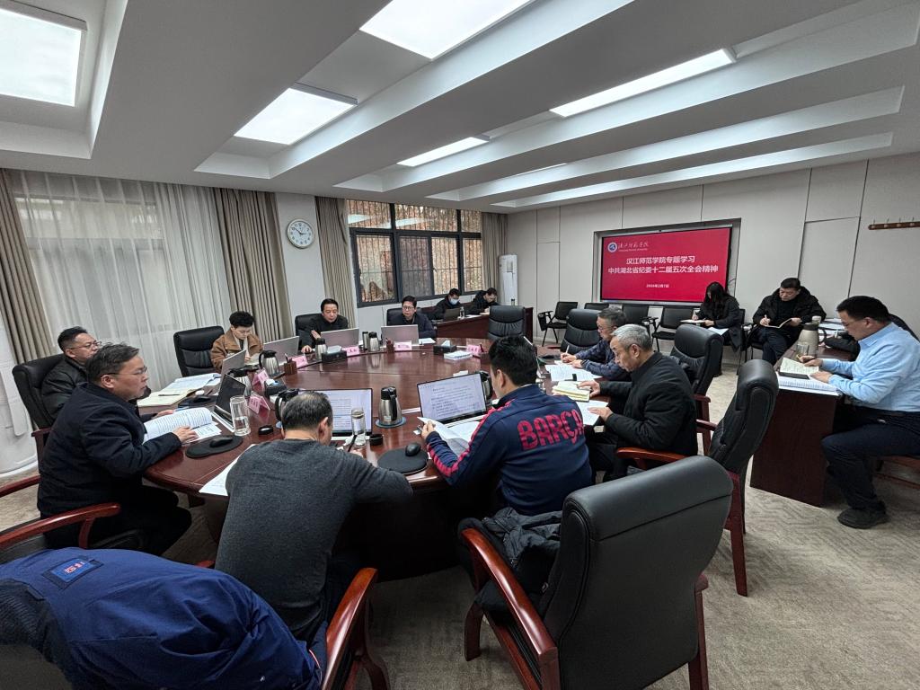 会议强调,推进全面从严治党是推动学校高质量发展的根本政治保障,全校上下要切实增强政治自觉、思想自觉和行动自觉,以严的基调、实的举措把全会精神落到实处。一是提高政治站位,将学习贯彻全会精神与学校“十五五”发展开局、本科教育教学审核评估、申硕攻坚等中心工作紧密结合,以全面从严治党引领保障学校发展大局;二是聚焦核心任务,把政治监督贯穿学校办学治校、改革发展全过程各方面,确保上级党委和学校党委各项决策部署落地见效、执行到位;三是压紧压实责任,学校党委坚决扛起全面从严治党主体责任,全力支持纪委履行专责监督职责,持续深化“清廉汉师”建设,以高度的政治自觉配合做好省委巡视整改工作,凝聚管党治党合力,共同营造风清气正的校园政治生态。